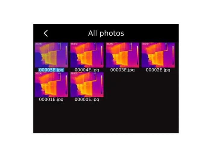 Nhấn “phím SET” và menu phụ giao diện ảnh sẽ xuất hiện, nhấn “Phím trái / phải” để chọn thông báo ảnh (đối với UTi720E, bạn có thể view thời gian chụp ảnh, thời gian sửa đổi, độ phát xạ, độ phân giải hồng ngoại, nhiệt độ môi trường, độ ẩm, khoảng cách phản chiếu và mã QR, nhận xét và các thông tin khác. Đối với UTi730E, bạn có thể view thời gian chụp ảnh, sửa đổi thời gian, độ phát xạ, độ phân giải hồng ngoại, mã QR, nhận xét và thông tin khác), sửa đổi nhận xét (sau khi thêm nhận xét, bạn có thể view chúng trong tin nhắn ảnh) và chỉnh sửa trạng thái (nó có thể được sử dụng để chỉnh sửa lần thứ hai đối với công cụ đánh dấu, chế độ hình ảnh, chuyển đổi mẫu, công cụ đo nhiệt độ, công cụ vitta và các chức năng khác trên ảnh gốc và chức năng về cơ bản giống nhau làm chức năng trang chính), mã QR (nó có thể được thêm vào mã QR hiện có để phân loại ảnh. Sau khi phân loại, bạn có thể view các ảnh phân loại mã QR tương ứng trong các thư mục khác nhau và cũng có thể xóa mã QR của ảnh hiện tại hoặc thêm mã QR mới. Mã QR mới không được thêm vào đây để phân loại thư mục) và xóa ảnh.