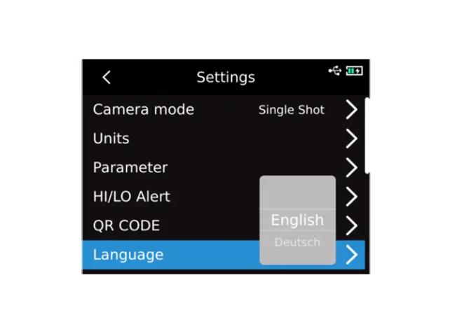 Sau khi vào menu cấp đầu tiên trên trang Cài đặt, hãy chọn tùy chọn “Ngôn ngữ” và chọn tiếng Anh, Pháp, Đức, Tây Ban Nha hoặc Nga bằng cách sử dụng “Phím Lên / Xuống”.