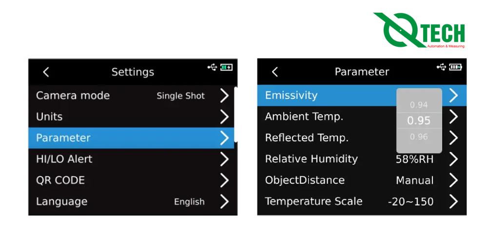 Lưu ý: Độ phát xạ và nhiệt độ phản xạ là hai thông số quan trọng nhất cần được cài đặt chính xác. Nếu bạn nghi ngờ, vui lòng sử dụng các giá trị mặc định.